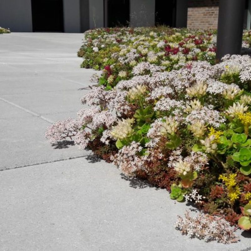 Til bygningerne i Aabyen har man valgt moderne sedumtage fra Nature Impact – nærmere bestemt er valget faldet på Nature Roof – et frodigt blomstrende tag med stor artsdiversitet, udvalgt af vores gartnere. De blomstrer forskelligt og giver året igennem et flot og varieret farvespil til glæde for både mennesker og insekter.