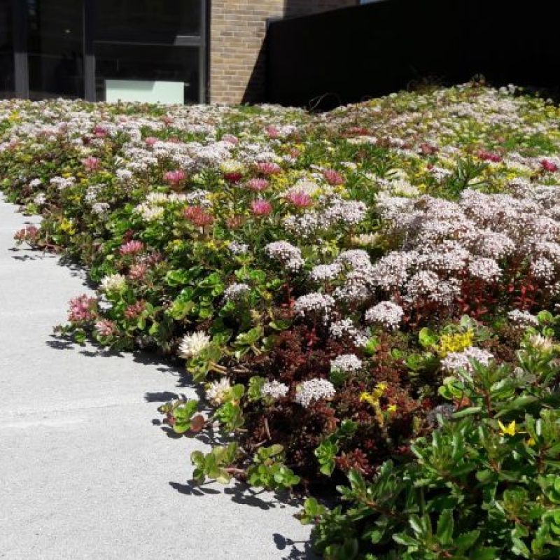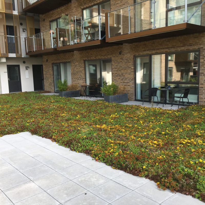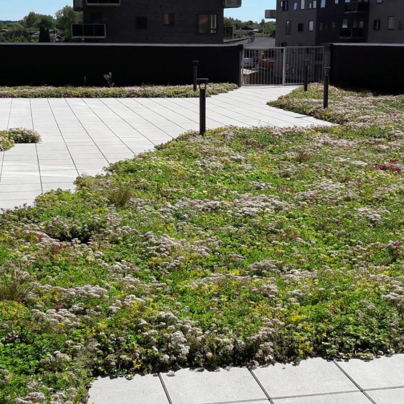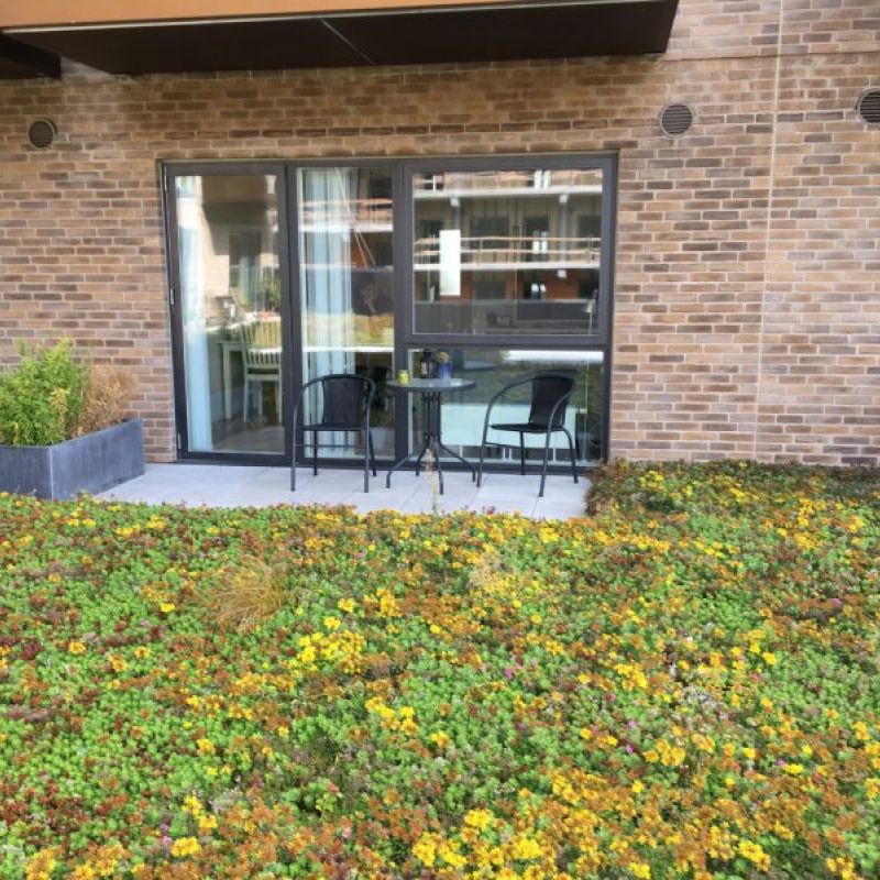 3.000 m2 grønt tag – men der udlægges løbende mere, efterhånden som byggeriet færdiggøres