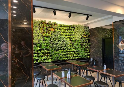 Inwestując w ścianę roślinną, oczekujesz także, że będzie ona dobrze wyglądać. Podobnie jak rośliny doniczkowe w salonie, zielona ściana potrzebuje odrobiny pielęgnacji i troski. Kiedy mówimy trochę, to naprawdę to mamy na myśli. W ciągu sezonu wymieniamy tylko 5% roślin na naszych ścianach roślinnych. Powodem, dla którego możemy wprowadzić tak niewiele zmian, jest to, że naszymi ścianami roślinnymi zarządza codziennie nasz zespół ds. operacji i konserwacji za pośrednictwem aplikacji, w której dostarczana jest odpowiednia ilość wody i nawozu do systemu.